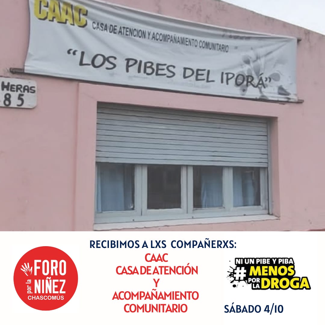 También participarán referentes de la CAAC – Casa de Atención y Acompañamiento Comunitario, Ni Un Pibe menos por la Droga – Los Pibes del Ipora, quienes compartirán su experiencia de trabajo comunitario en Chascomús.