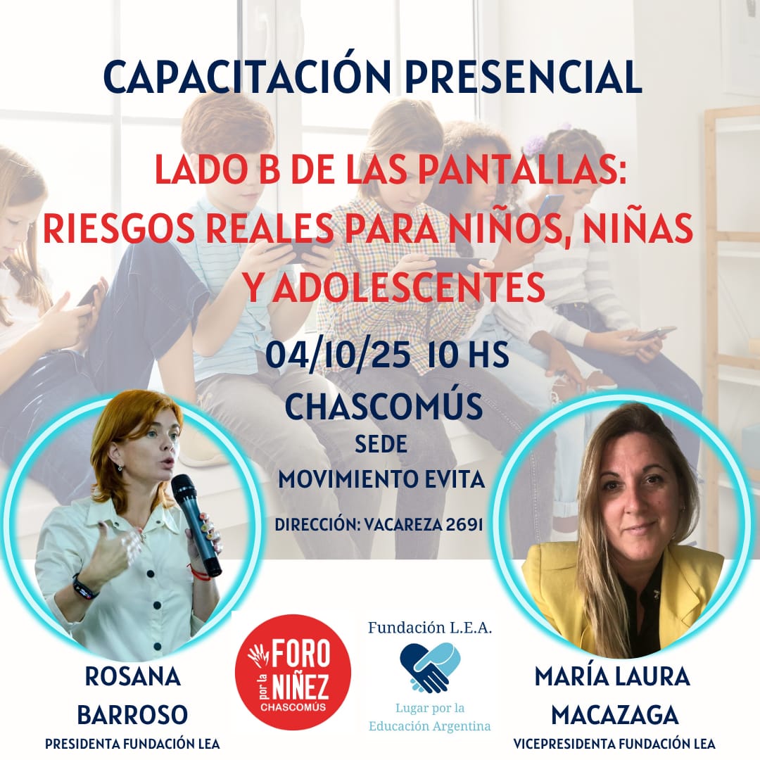 Desde el Foro por la Niñez de Chascomús se vienen realizando capacitaciones para referentes sobre temáticas relacionadas a las infancias y adolescencias. En esta oportunidad se llevará a cabo de manera presencial el sábado 4 de octubre, de 10 a 12 horas, en la sede del Movimiento Evita la capacitación sobre Ciudadanía Digital.